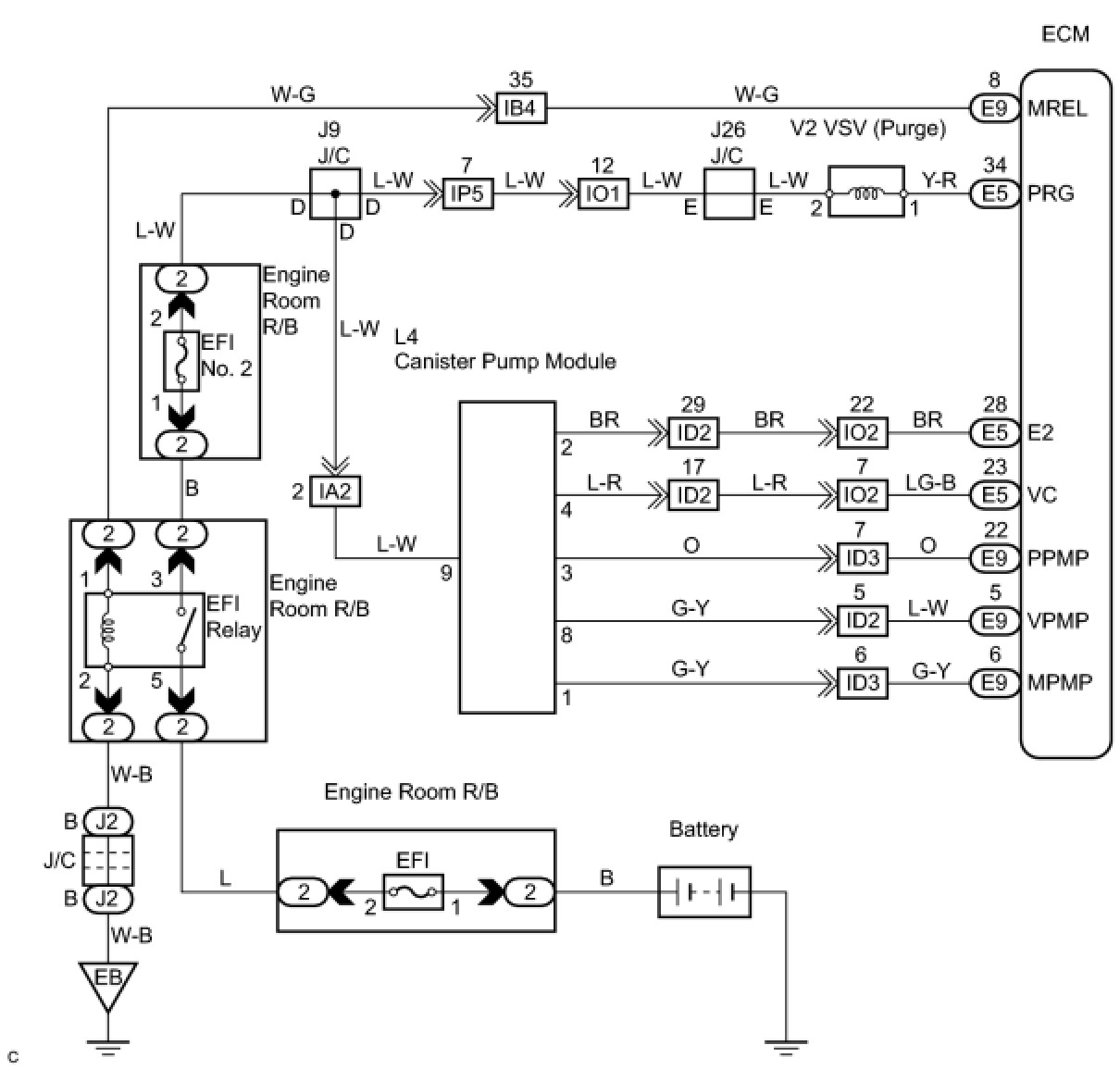 While the engine is running, if a predetermined condition (closed-loop etc.) is met, the purge VSV is opened by the ECM and stored fuel vapors in the canister are purged to the intake manifold. The ECM changes the duty cycle ratio of the purge VSV to control purge flow volume.