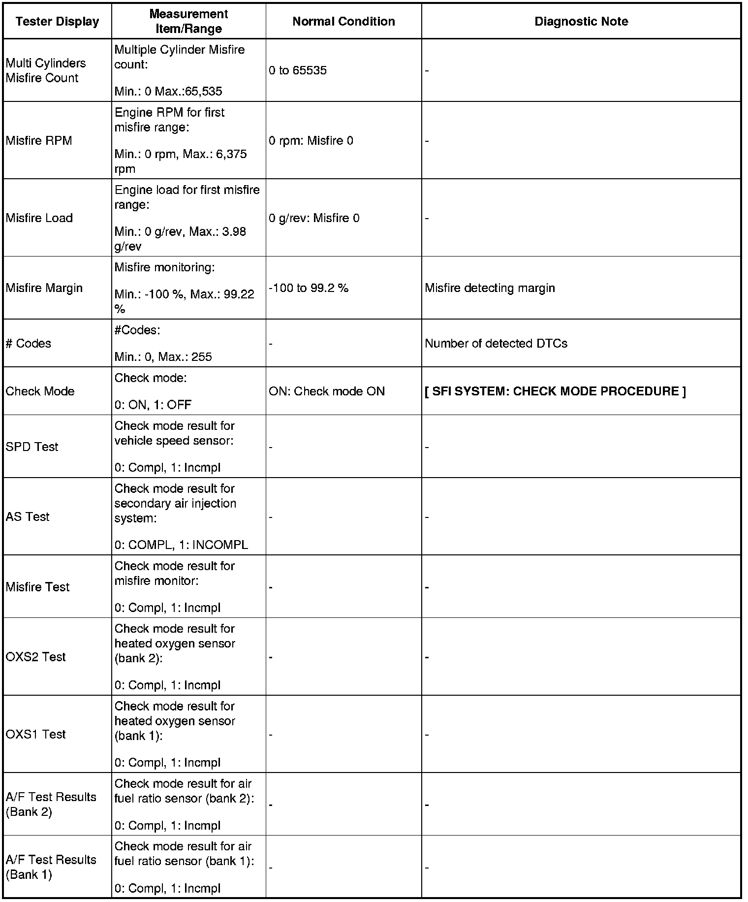 In the table below, the values listed under "Normal Condition" are reference values. Do not depend solely on these reference values when deciding whether a part is faulty or not.
