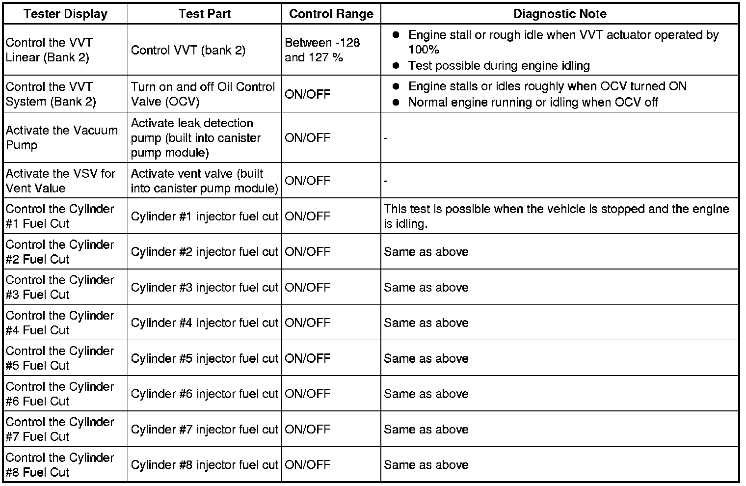 2UZ-FE ENGINE CONTROL SYSTEM: SFI SYSTEM: DATA LIST / ACTIVE TEST
