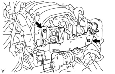 (d) Remove the 2 bolts and ground cables from the RH and LH cylinder heads.