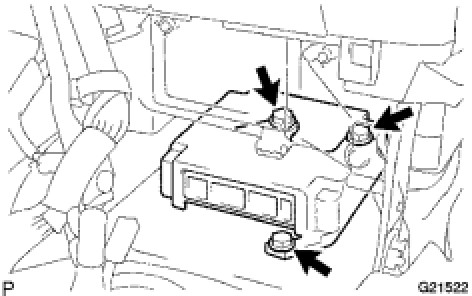 - When installing the center airbag sensor assembly, be careful that the SRS wiring does not interfere with other parts and that it is not pinched between other parts.