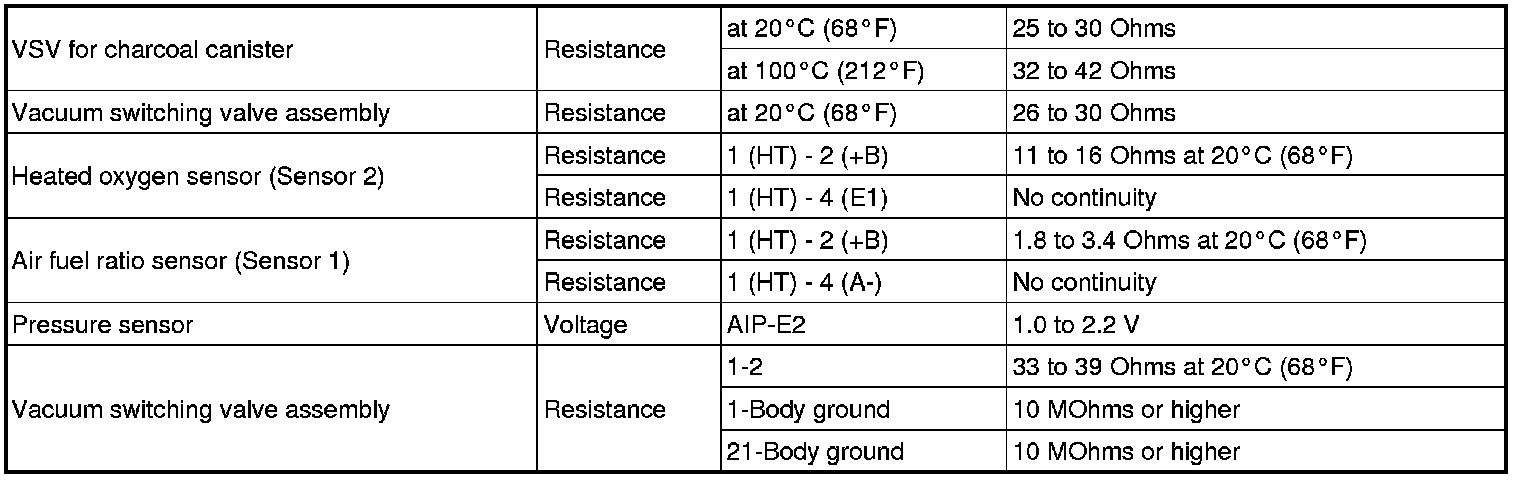 SERVICE SPECIFICATIONS: 2UZ-FE EMISSION CONTROL: SERVICE DATA