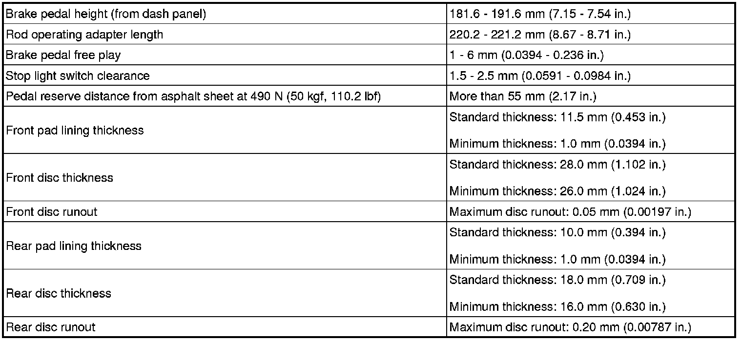SERVICE SPECIFICATIONS: BRAKE: SERVICE DATA