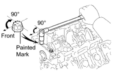 Retighten the cap bolts 90° as shown in the illustration.