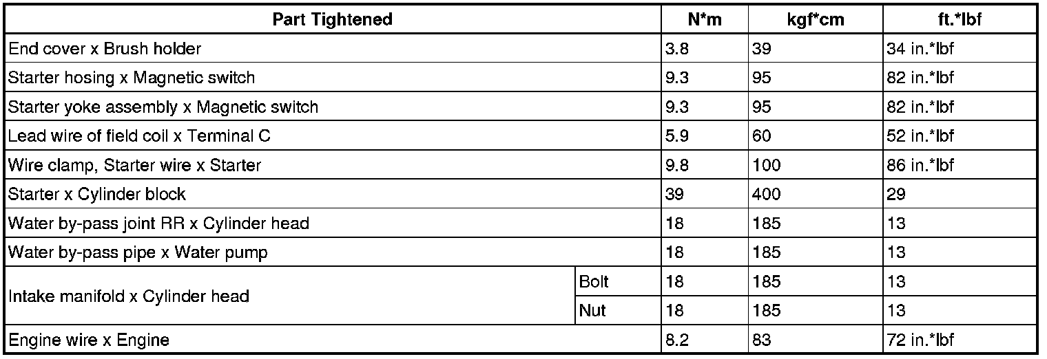 SERVICE SPECIFICATIONS: 2UZ-FE STARTING: TORQUE SPECIFICATIONS