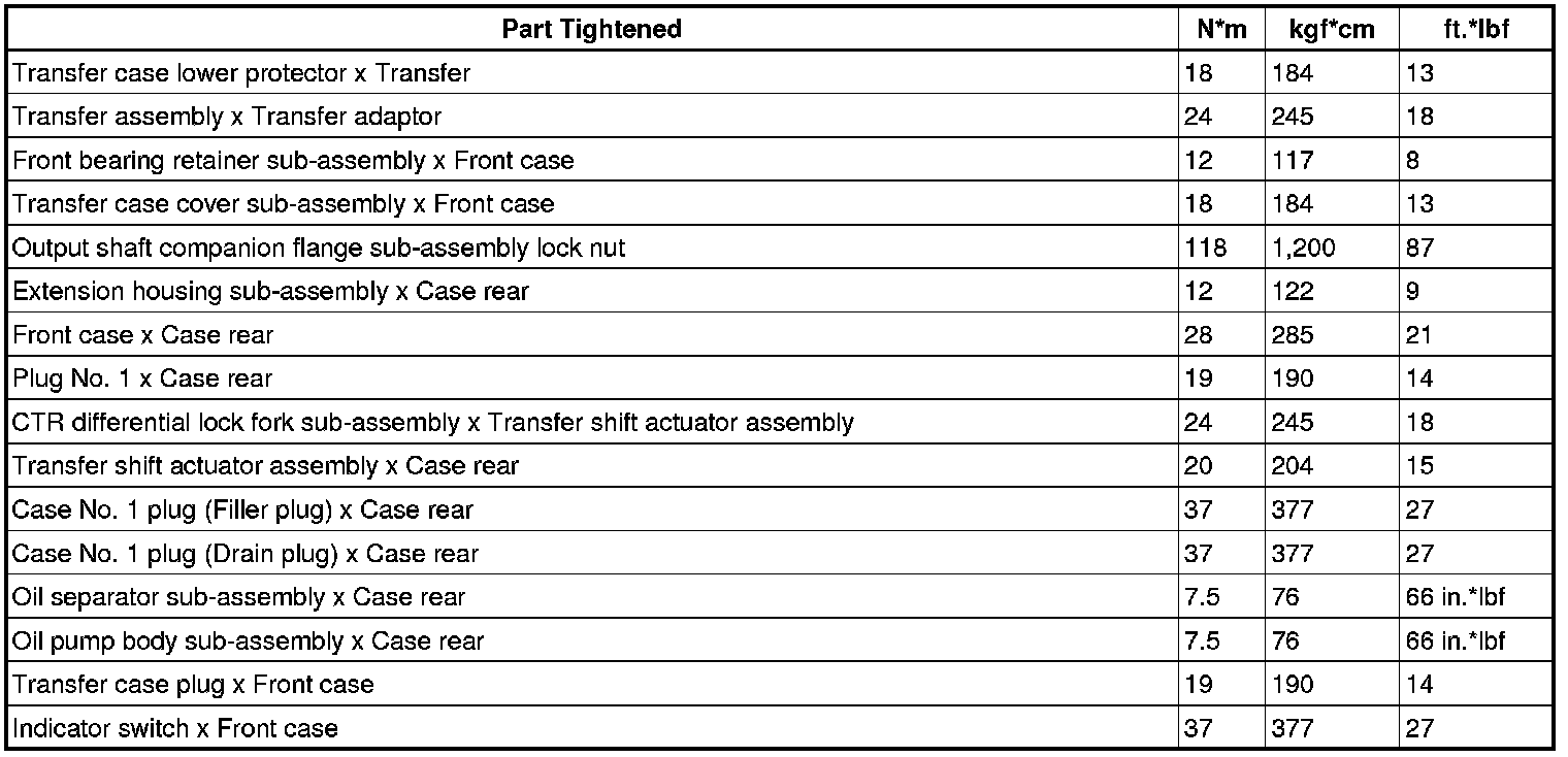 SERVICE SPECIFICATIONS: VF4BM TRANSFER: TORQUE SPECIFICATIONS