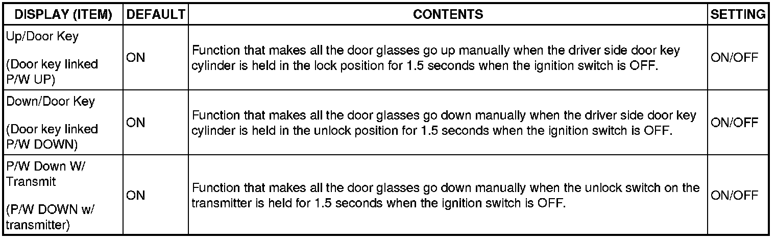 WINDSHIELD / WINDOWGLASS: POWER WINDOW CONTROL SYSTEM: CUSTOMIZE PARAMETERS