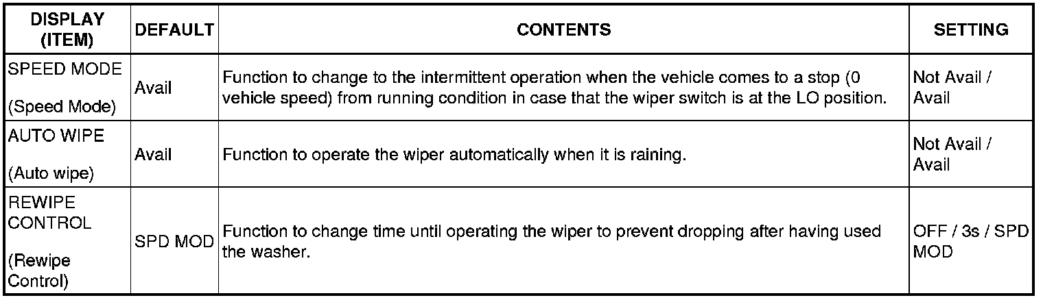 WIPER AND WASHER: WIPER AND WASHER SYSTEM: CUSTOMIZE PARAMETERS