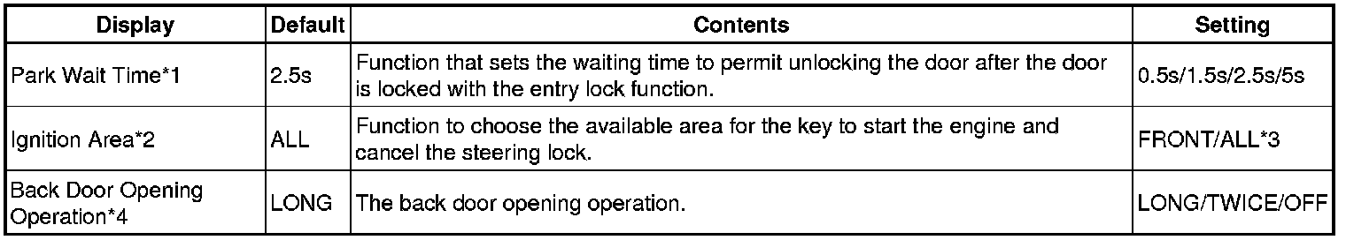 *4: Back door open mode when vehicle is locked.