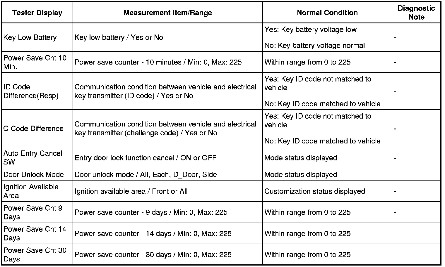 THEFT DETERRENT / KEYLESS ENTRY: SMART ACCESS SYSTEM WITH PUSH-BUTTON START (for Entry Function): DATA LIST / ACTIVE TEST