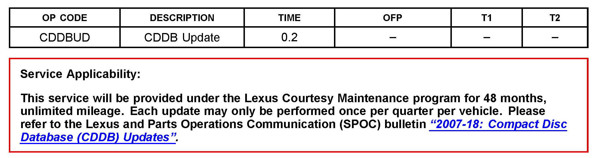 CDDB data updates will be released quarterly through the Technical Information System (TIS) and can be uploaded to the vehicle using the Navigation Update Tool and Navigation Programs Installer software. CDDB data only needs to be loaded onto the Navigation Update Tool once per quarterly release. Vehicle CDDB updates are performed using the Navigation Update Tool.
