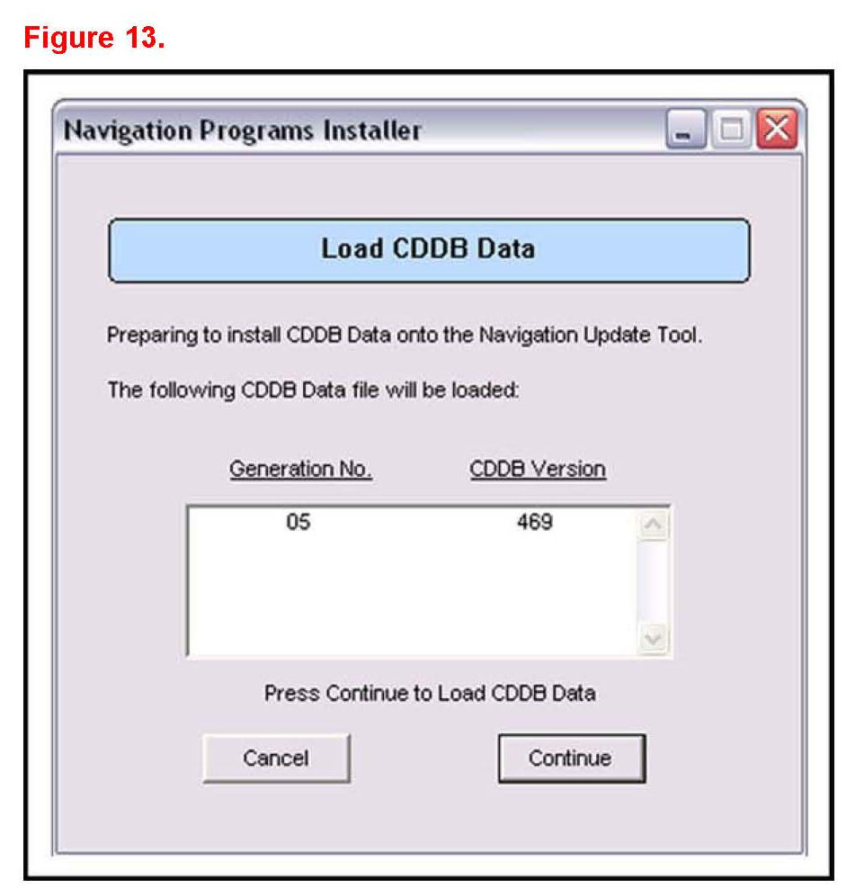 6. Click Continue to load CDDB data onto the Navigation Update Tool.