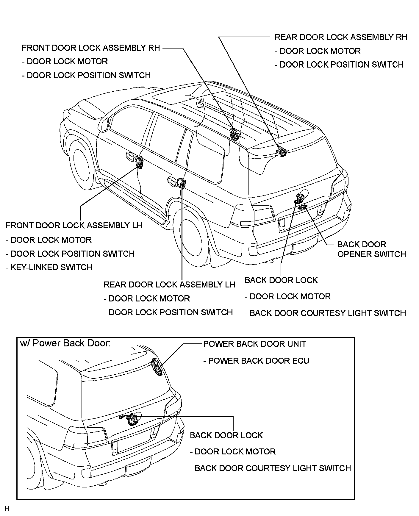 DOOR LOCK: POWER DOOR LOCK CONTROL SYSTEM: PARTS LOCATION