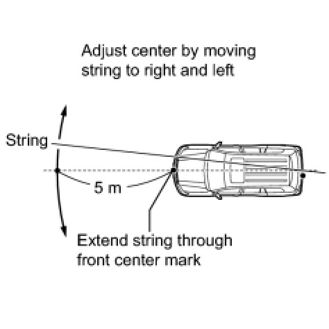 HINT: Affix one end of a string to the rear center point mark and extend the string 5 m (16.4 ft.) from the front of the vehicle. Move the other end of the string left and right to align the string with the front center point mark and make a straight line.