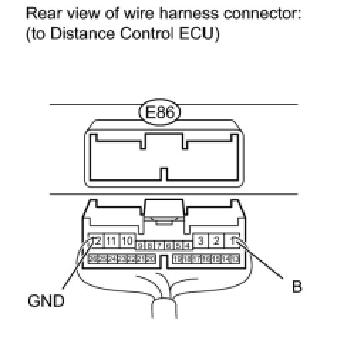 2. CHECK HARNESS AND CONNECTOR (DISTANCE CONTROL ECU - BATTERY AND BODY GROUND)