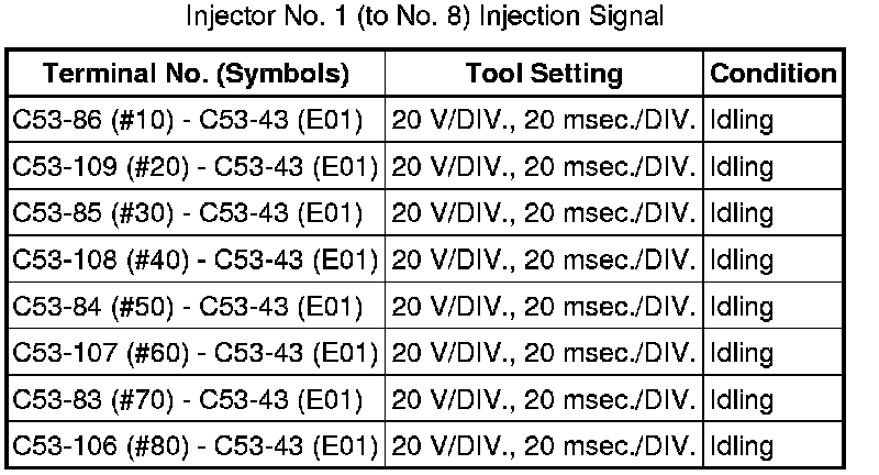 HINT: If the waveform is not similar to the illustration, check the waveform again after idling for 10 minutes or more.