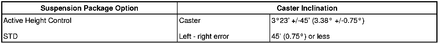 Standard Caster Inclination (Unloaded):