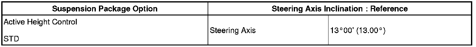 Standard Steering Axis Inclination (Unloaded Vehicle):