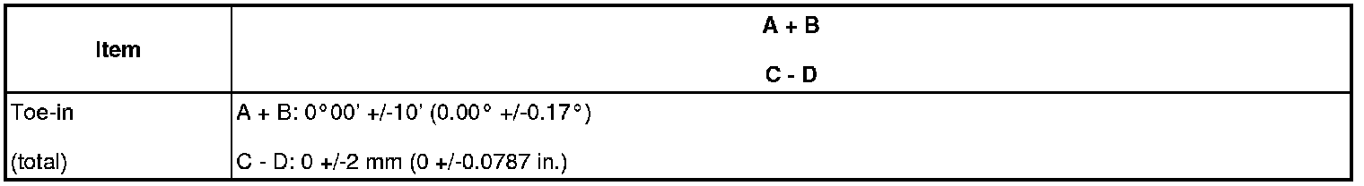 Standard Toe-in (Unloaded Vehicle):