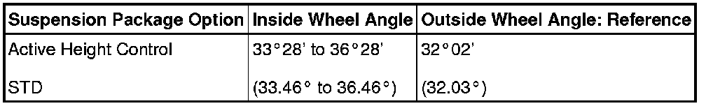 Standard Wheel Turning Angle (Unloaded Vehicle):