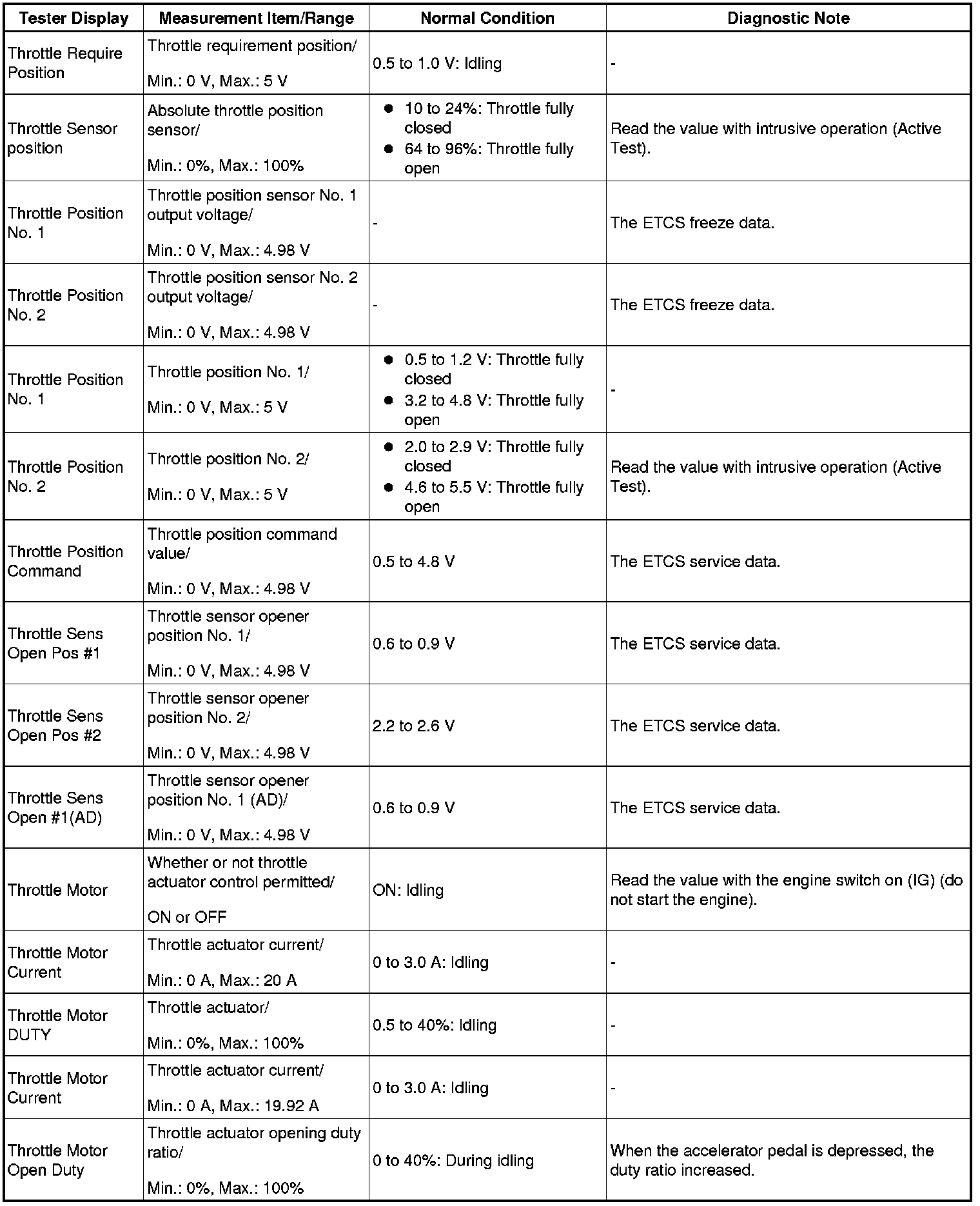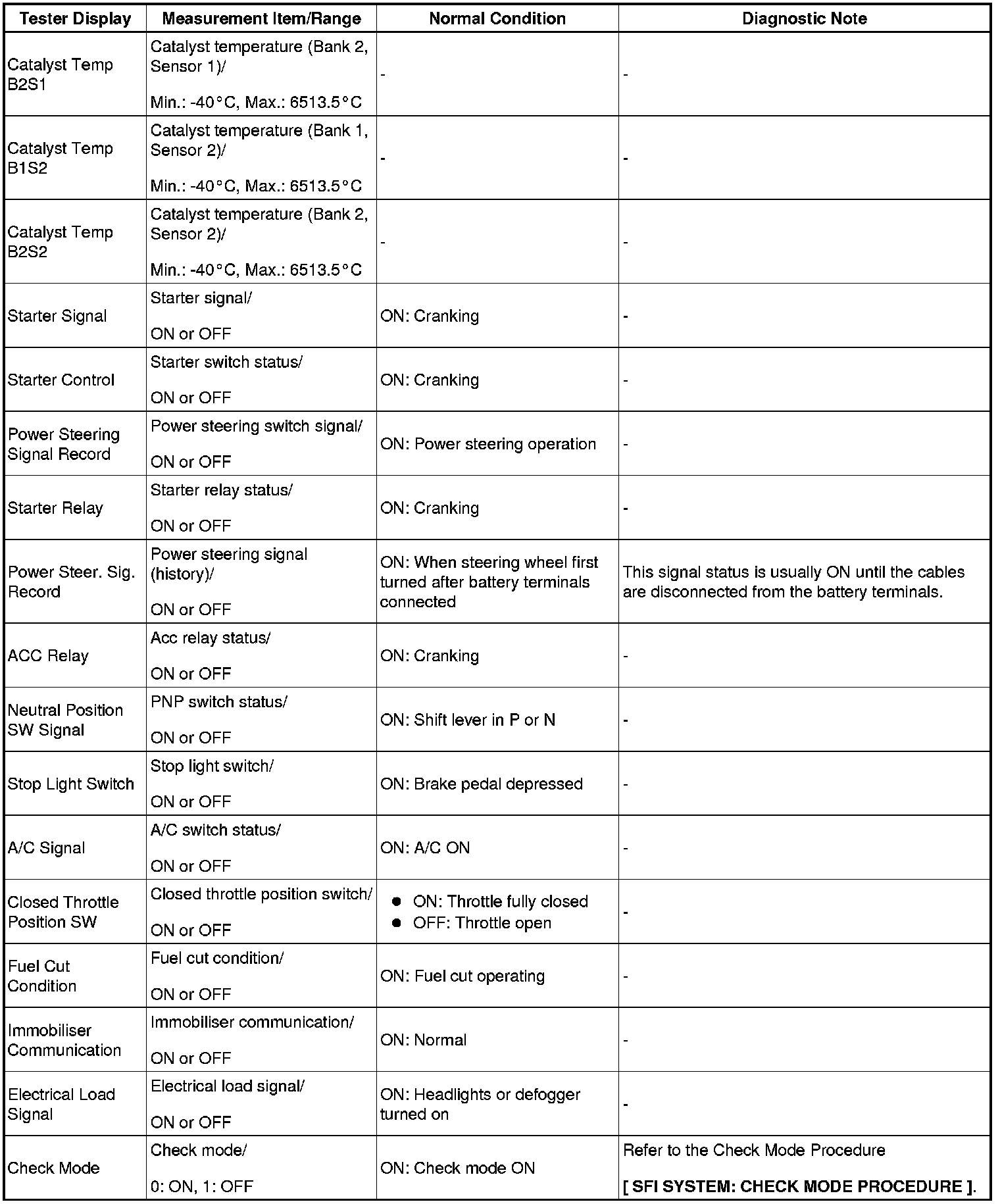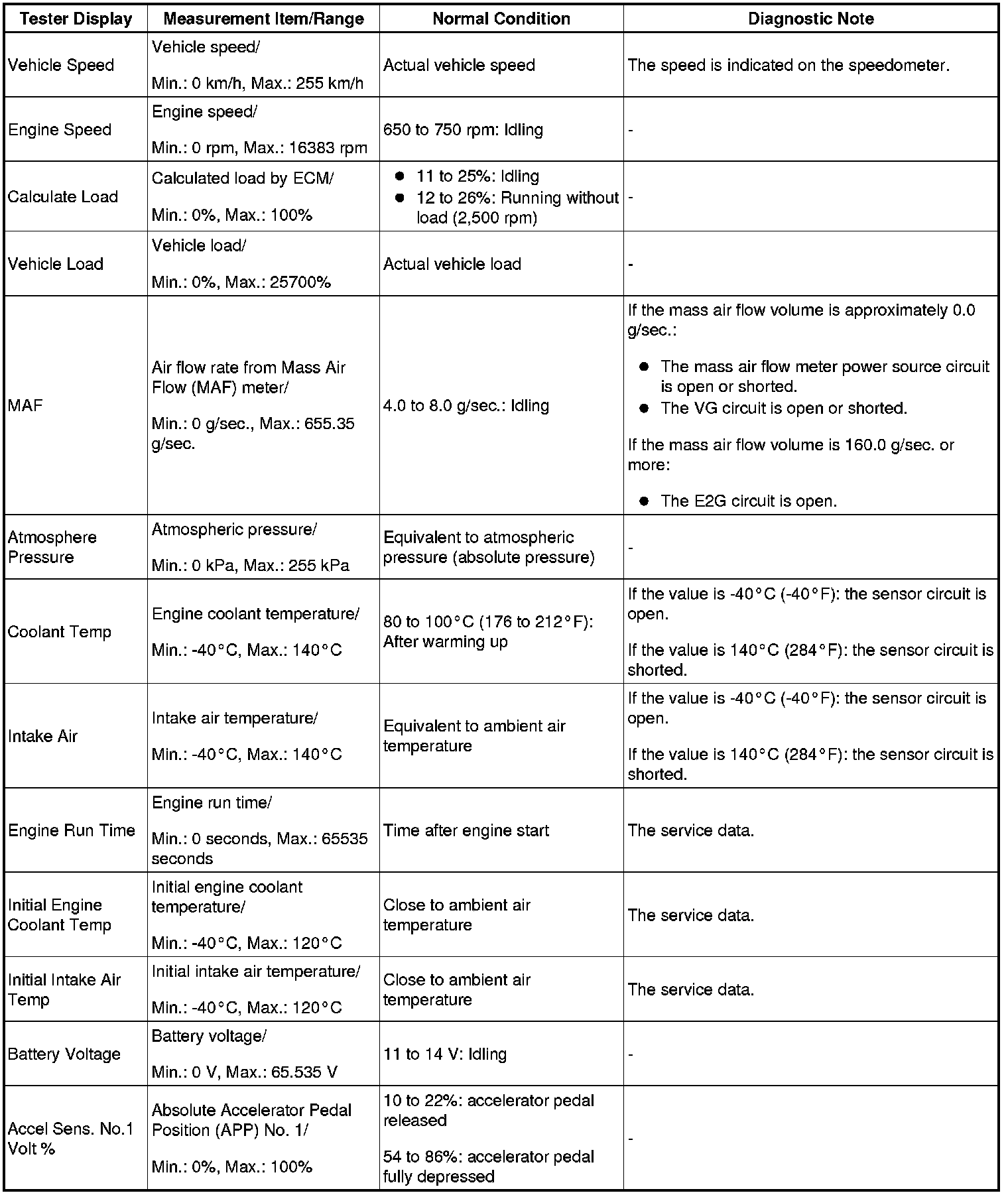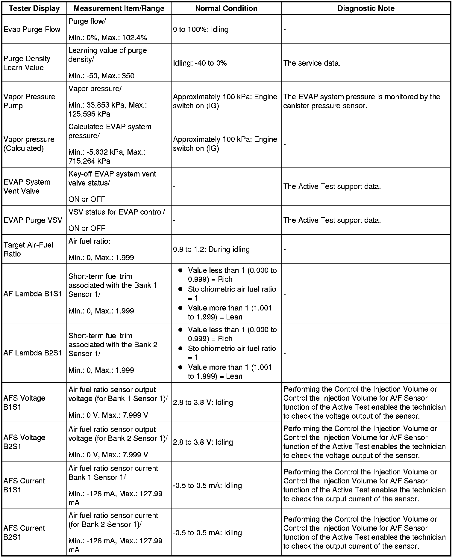 - Normal Condition: If no conditions are specifically stated for "idling", the shift lever is in N or P, the A/C switch is off and all accessory switches are off.