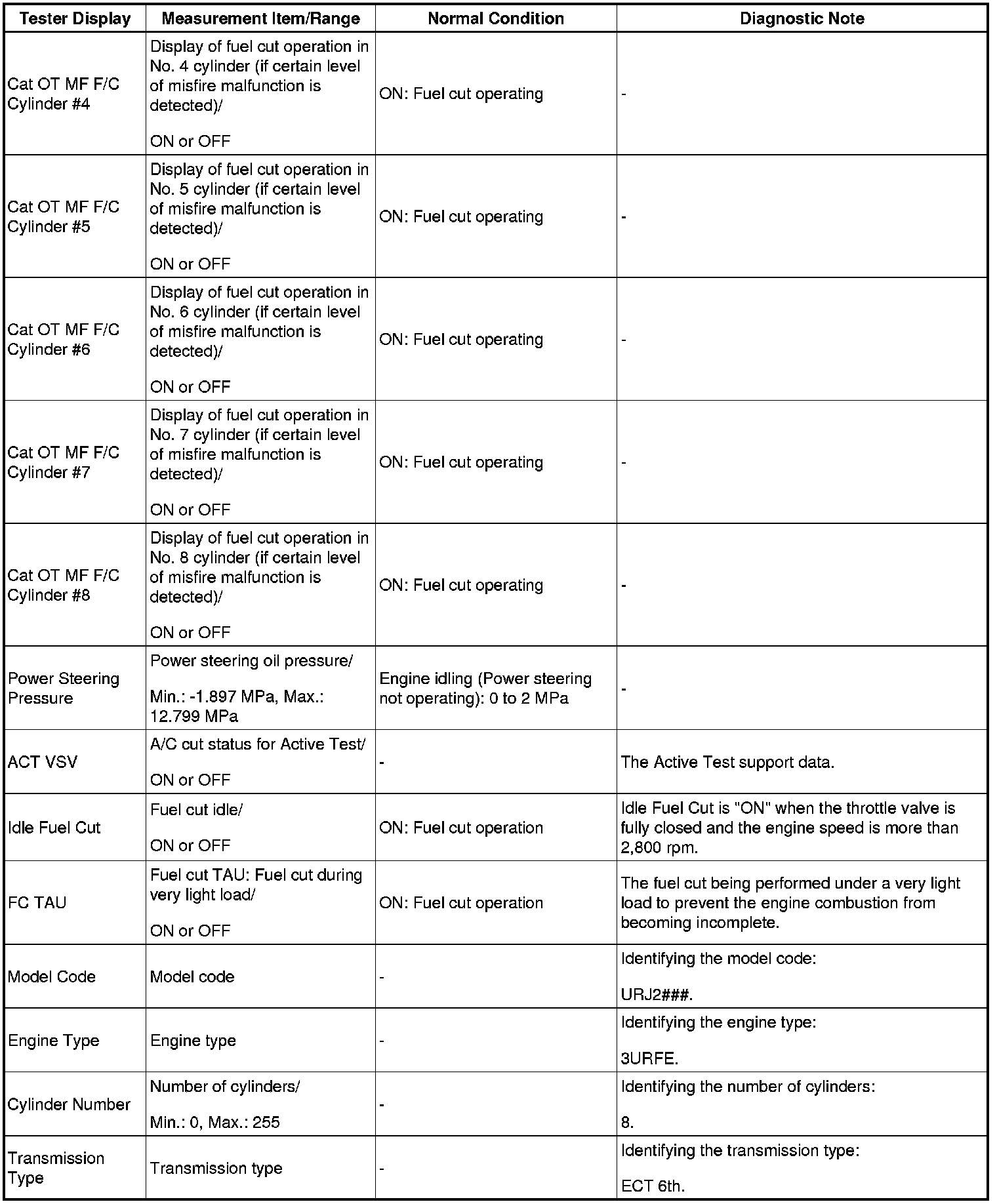 - *1: If the display of the Data List Prohibit the Catalyst OT Misfire prevent F/C item is Avail, perform this Active Test as described below.
