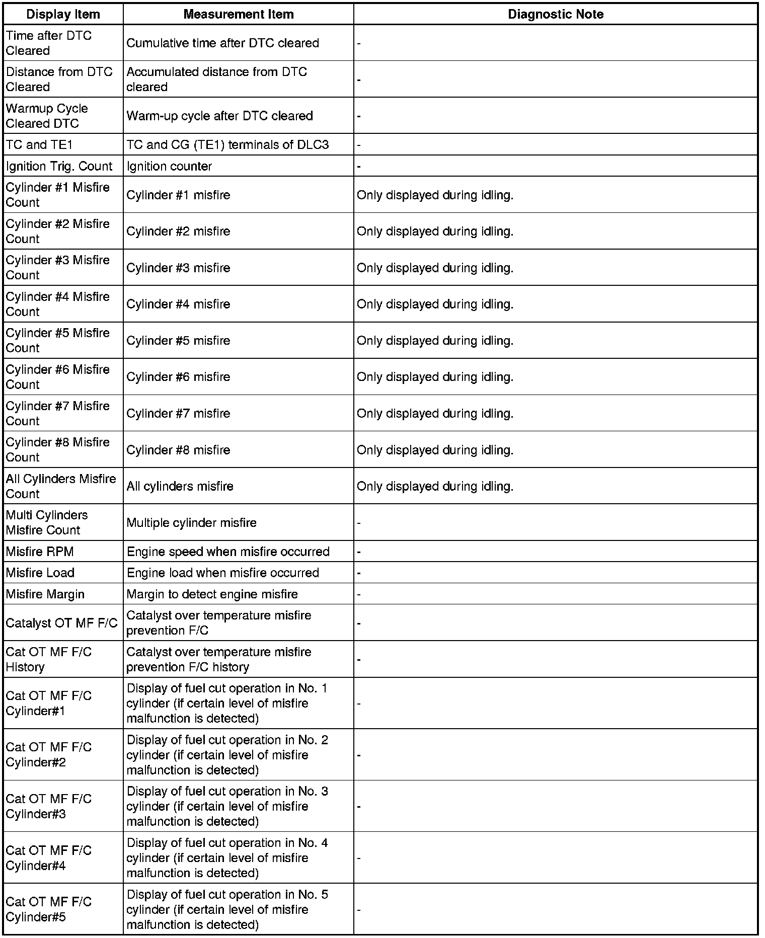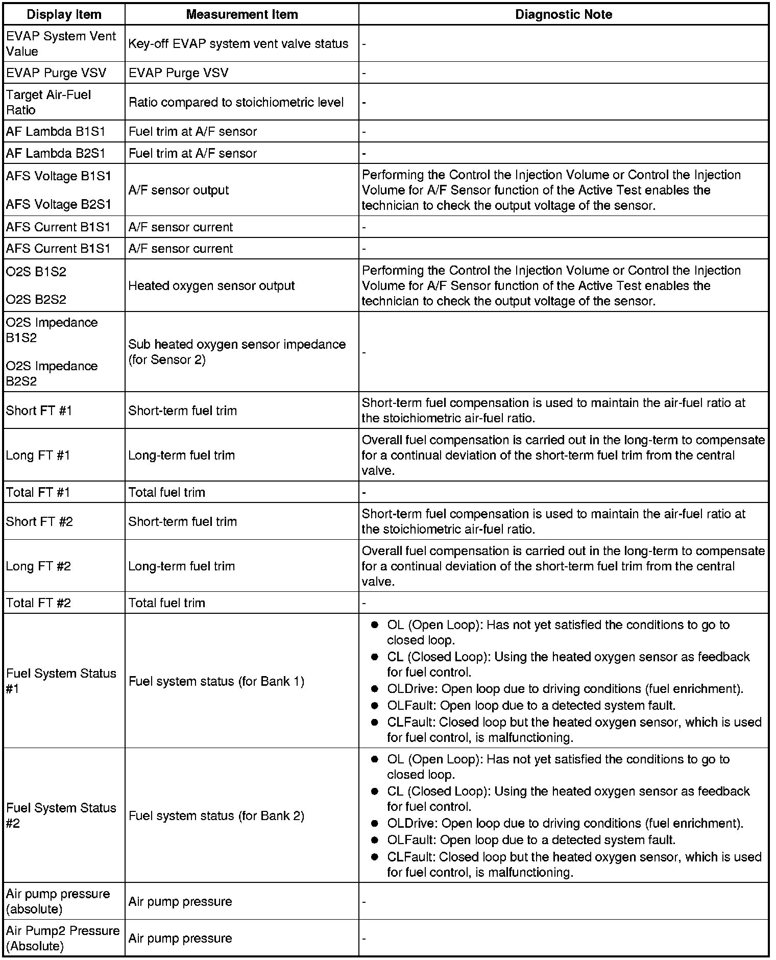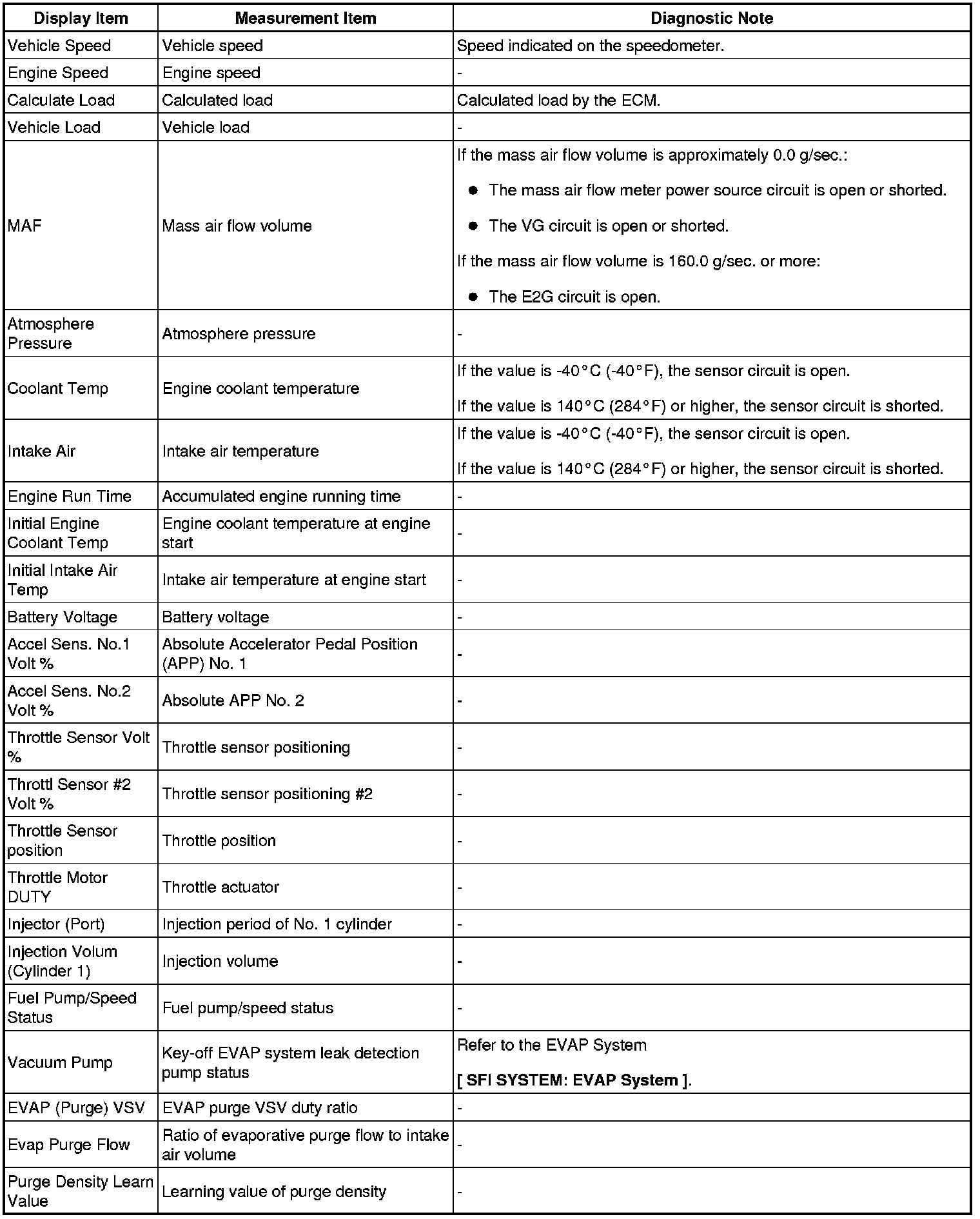3UR-FE ENGINE CONTROL: SFI SYSTEM: FREEZE FRAME DATA