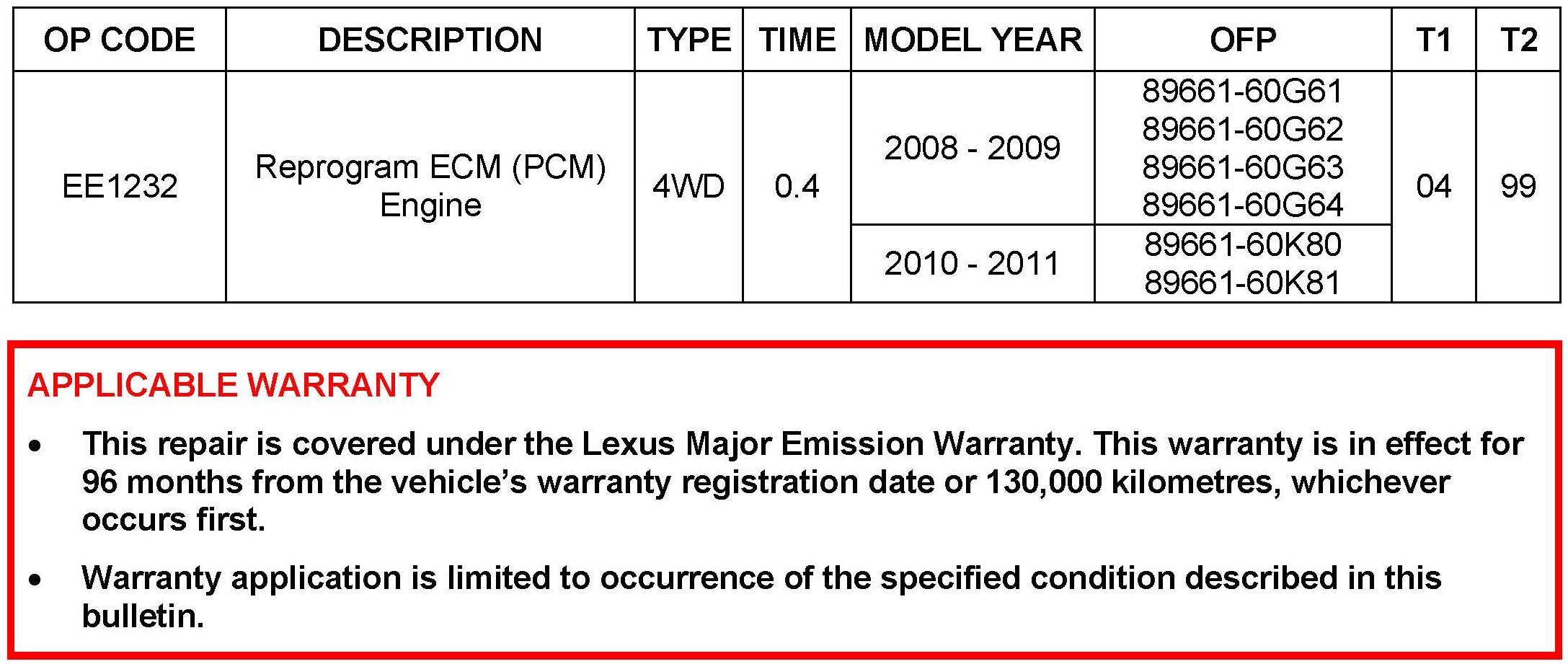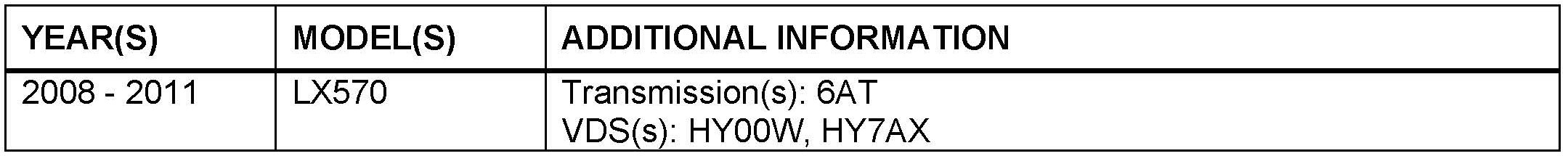 Some 2008 - 2011 model year LX 570 vehicles may exhibit a harsh shift on acceleration below 32 km/h (20 mph) during the 2-1 downshift. The Engine Control Module/ECM (SAE term: Powertrain Control Module/PCM) calibration has been revised. Use the following repair procedure to address this condition.