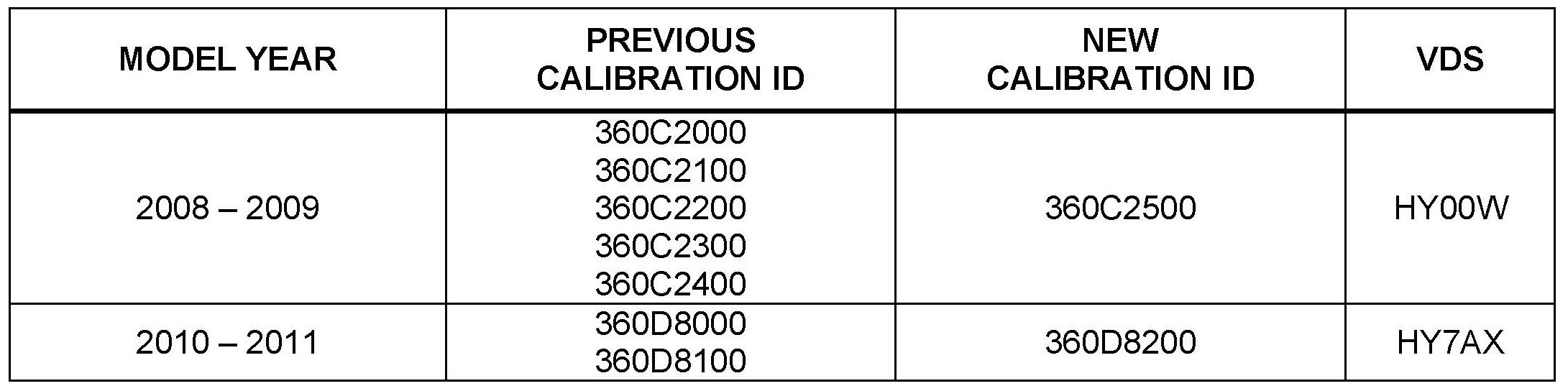 ^ Calibration ID(s) [Refer to the Calibration In formation chart for the NEW CALIBRATION ID]