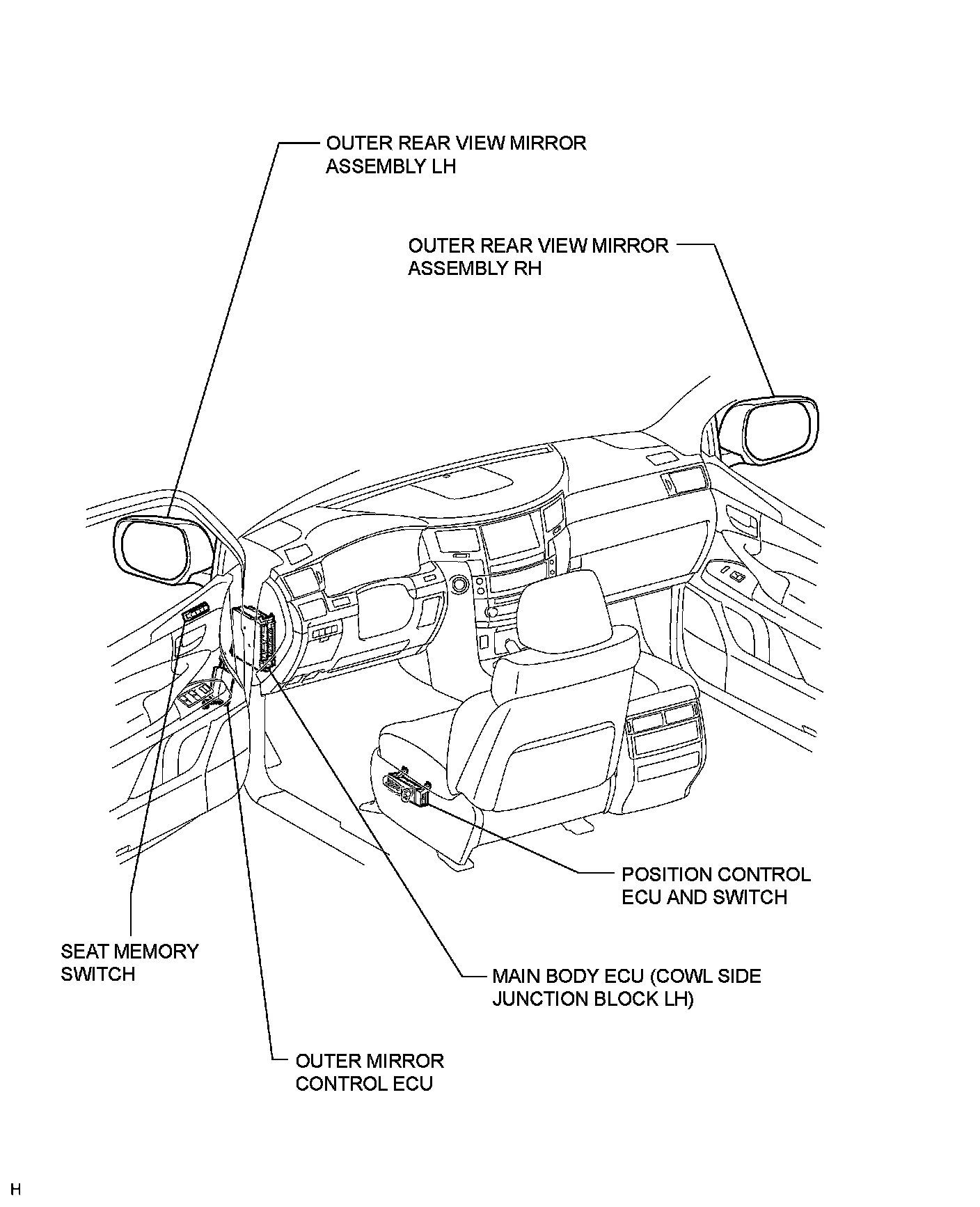 MIRROR (EXT): POWER MIRROR CONTROL SYSTEM: PARTS LOCATION
