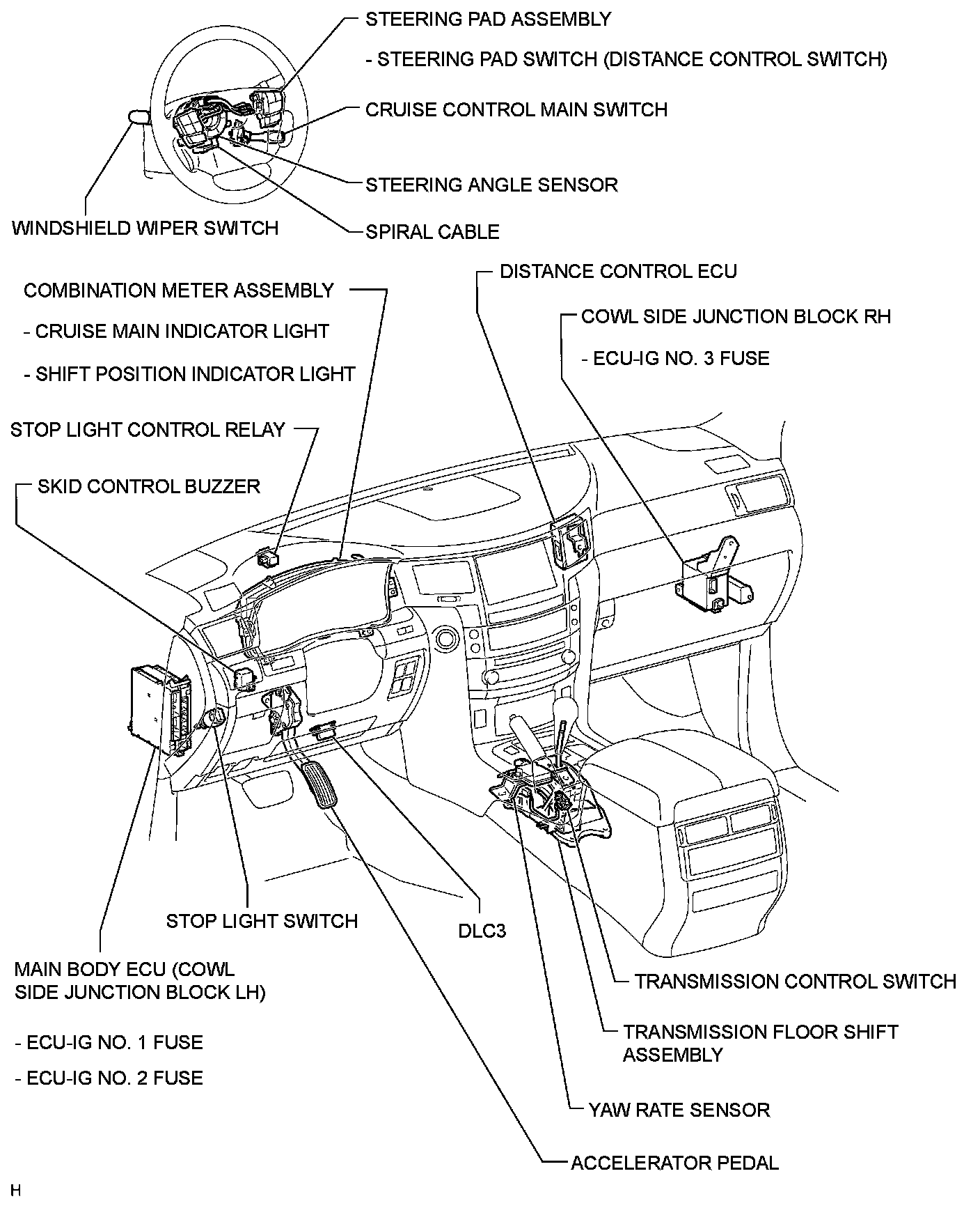 CRUISE CONTROL: DYNAMIC RADAR CRUISE CONTROL SYSTEM: PARTS LOCATION