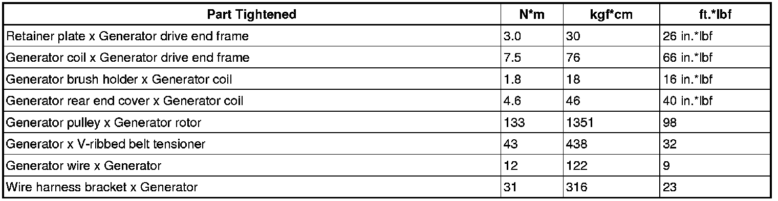 SPECIFICATIONS: 3UR-FE BATTERY / CHARGING: TORQUE SPECIFICATIONS