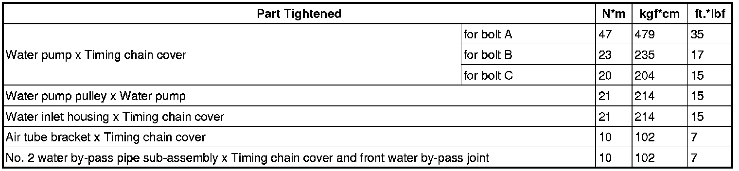 SPECIFICATIONS: 3UR-FE COOLING: TORQUE SPECIFICATIONS