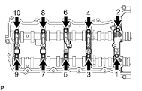 Final pass: Tighten end bolts in sequence 21 Nm (214 kgf-cm, 15 ft-lbf)