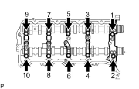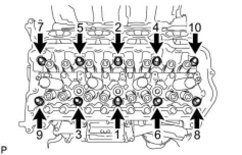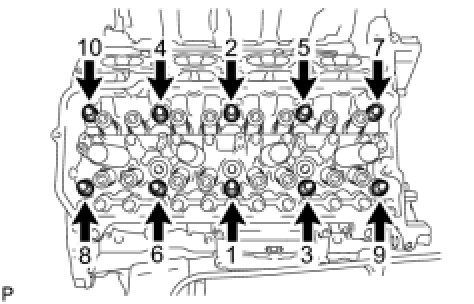 Final pass: Uniformly tighten nuts labeled A 10 Nm (102 kgf-cm, 7 ft-lbf)