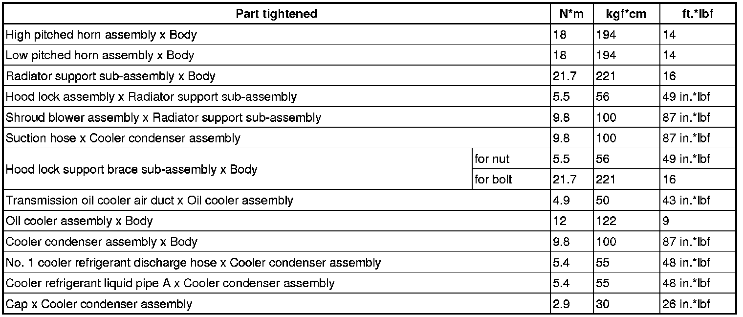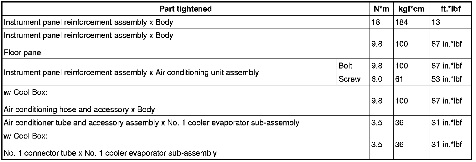 SPECIFICATIONS: HEATING / AIR CONDITIONING: TORQUE SPECIFICATIONS
