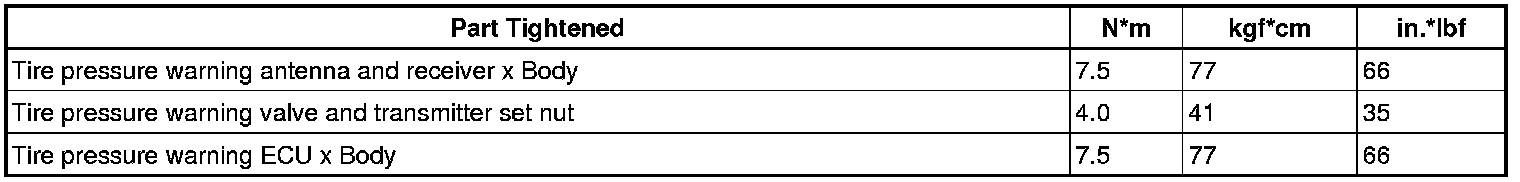 SPECIFICATIONS: TIRE PRESSURE MONITORING: TORQUE SPECIFICATIONS