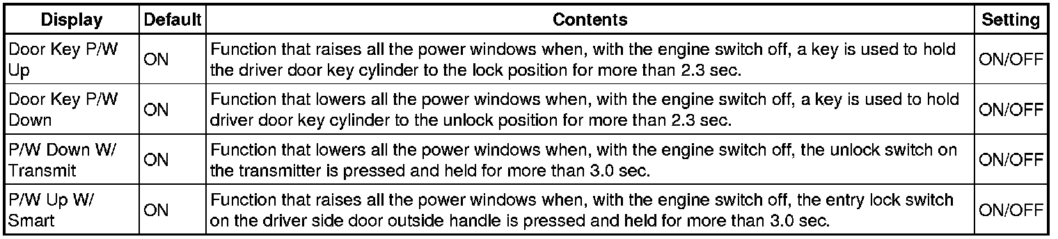 WINDOW / GLASS: POWER WINDOW CONTROL SYSTEM: CUSTOMIZE PARAMETERS