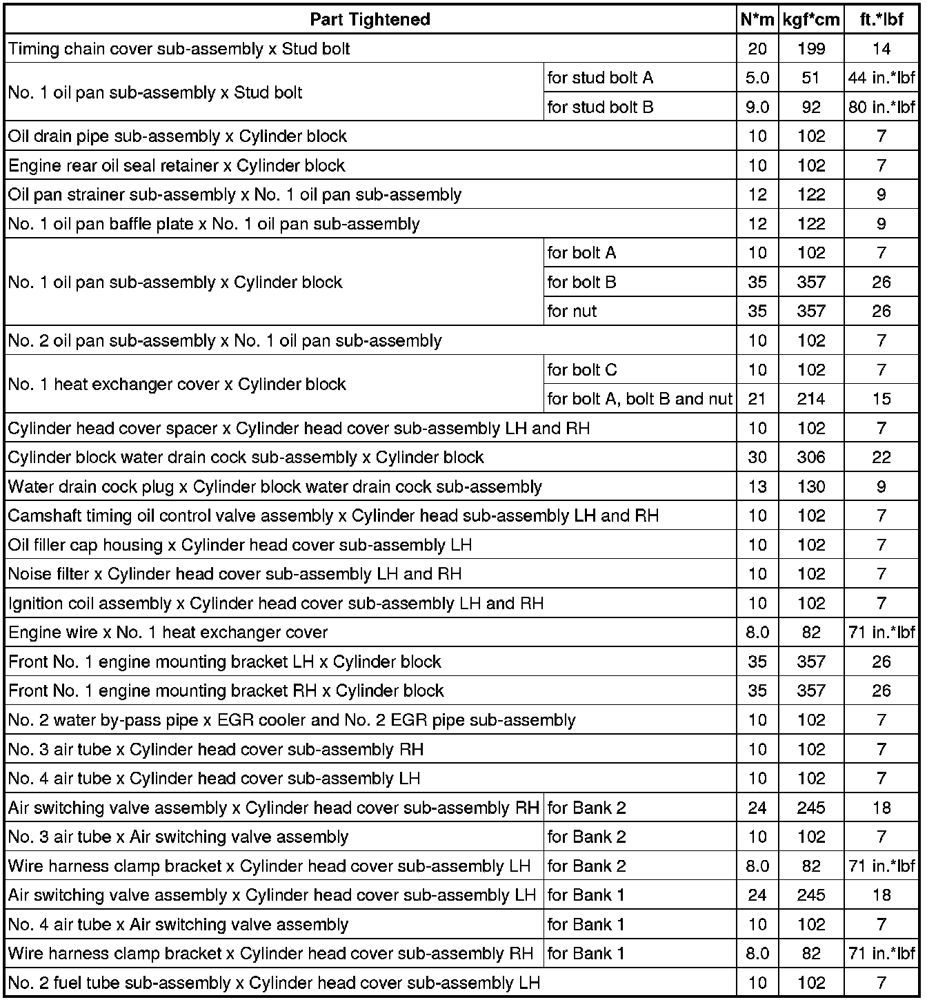 SPECIFICATIONS: 1UR-FE ENGINE MECHANICAL: TORQUE SPECIFICATIONS