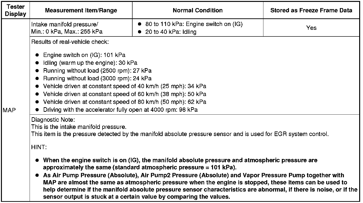 Normal Condition: If no conditions are specifically stated for "idling", the shift lever should be in N or P, the A/C switch should be off and all accessory switches should be off.