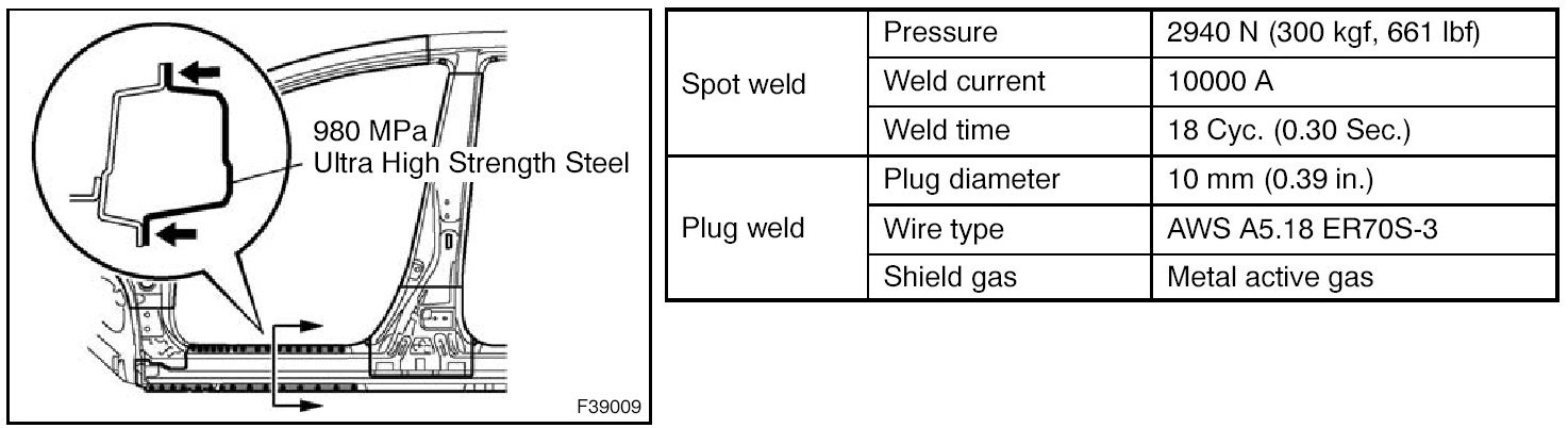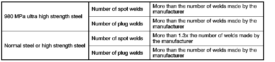 1. Follow the welding conditions below when welding ultra high strength steel to assure sufficient weld strength.
