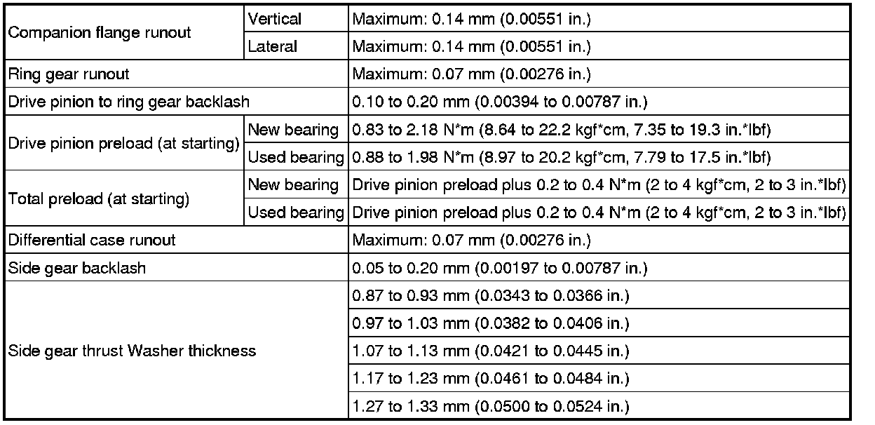 SPECIFICATIONS: AXLE AND DIFFERENTIAL: SERVICE DATA