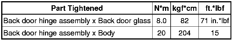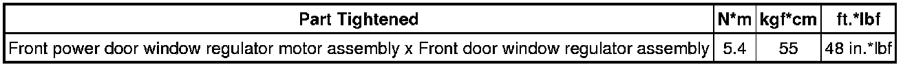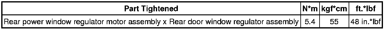 SPECIFICATIONS: WINDOW / GLASS: TORQUE SPECIFICATIONS