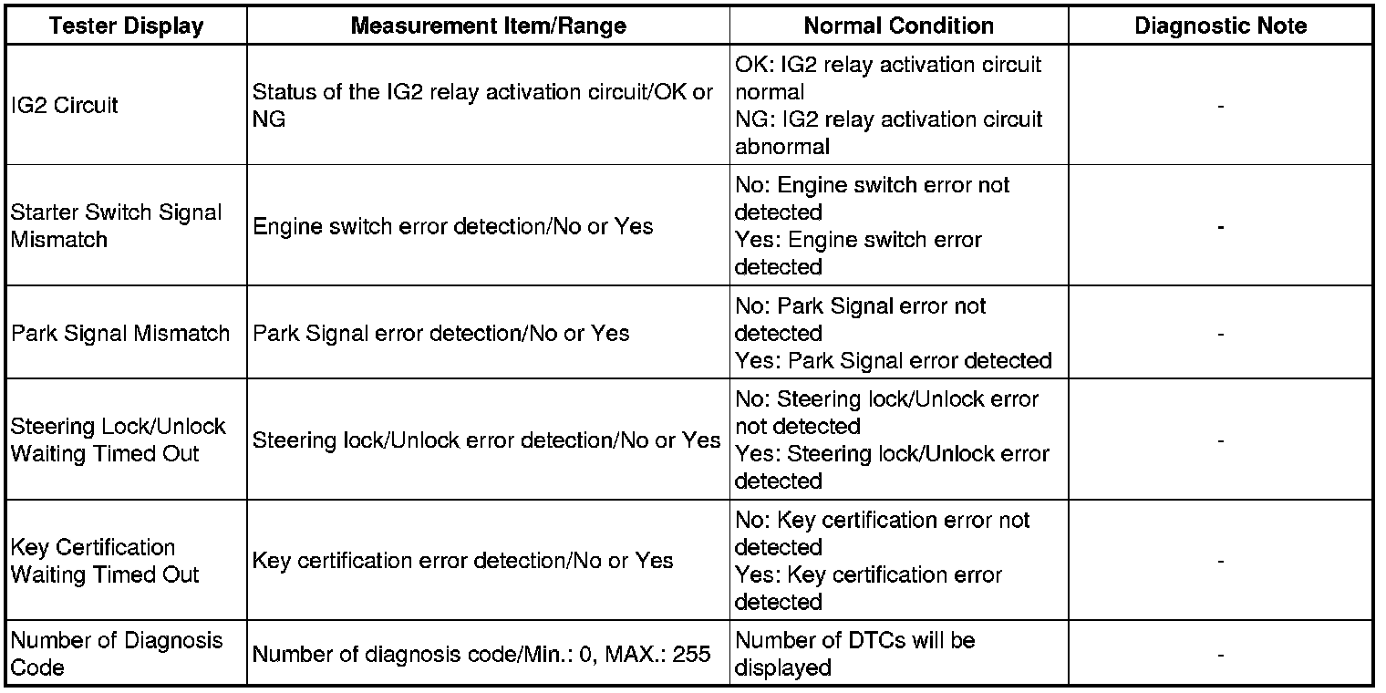 THEFT DETERRENT / KEYLESS ENTRY: SMART ACCESS SYSTEM WITH PUSH-BUTTON START (for Start Function): DATA LIST / ACTIVE TEST