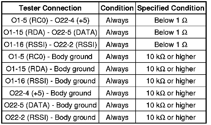 14. INSPECT DOOR CONTROL RECEIVER ASSEMBLY (DOOR CONTROL RECEIVER SIGNAL OUTPUT)