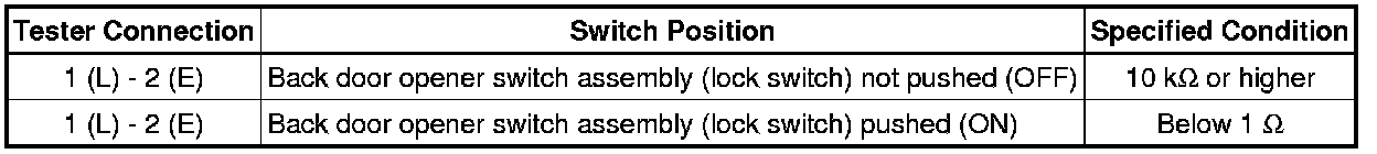 3. INSPECT BACK DOOR OPENER SWITCH ASSEMBLY
