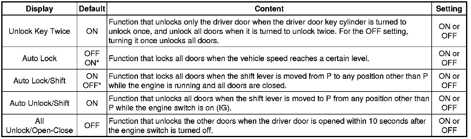DOOR LOCK: POWER DOOR LOCK CONTROL SYSTEM: CUSTOMIZE PARAMETERS