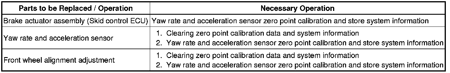 Performing the following procedure will perform the yaw rate and acceleration sensor zero point calibration and store system information simultaneously.