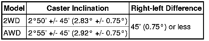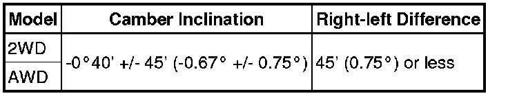 The body and suspension may be damaged if the camber is not correctly adjusted according to the above table.