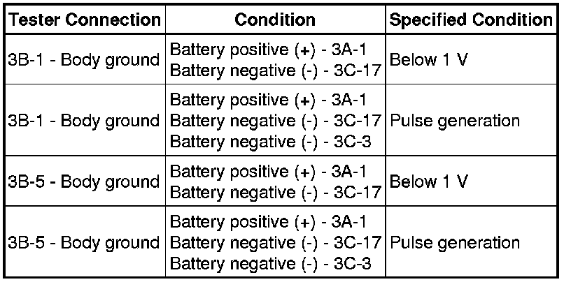 2 Measure the voltage and check for pulses according to the value(s) in the table below.